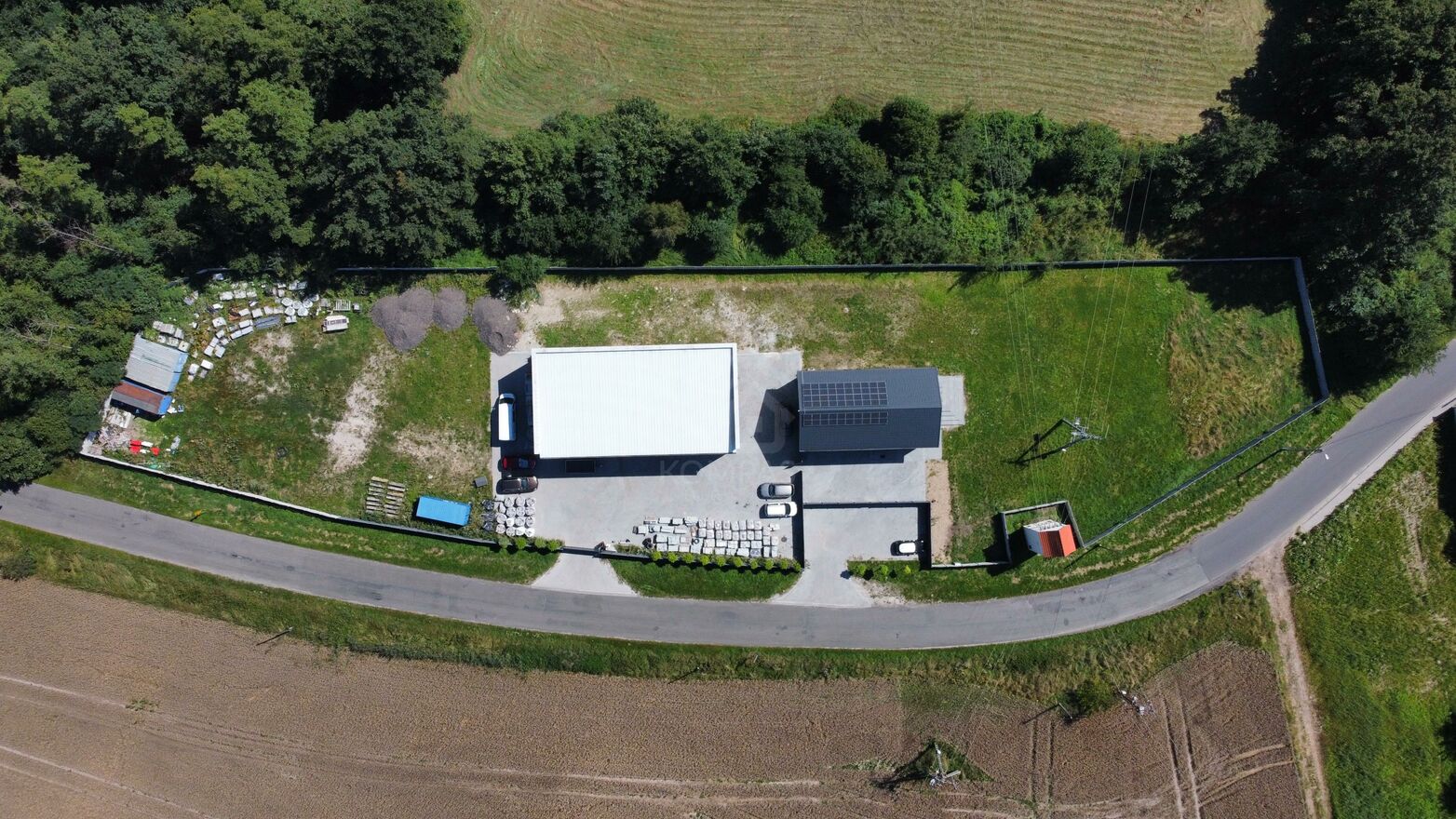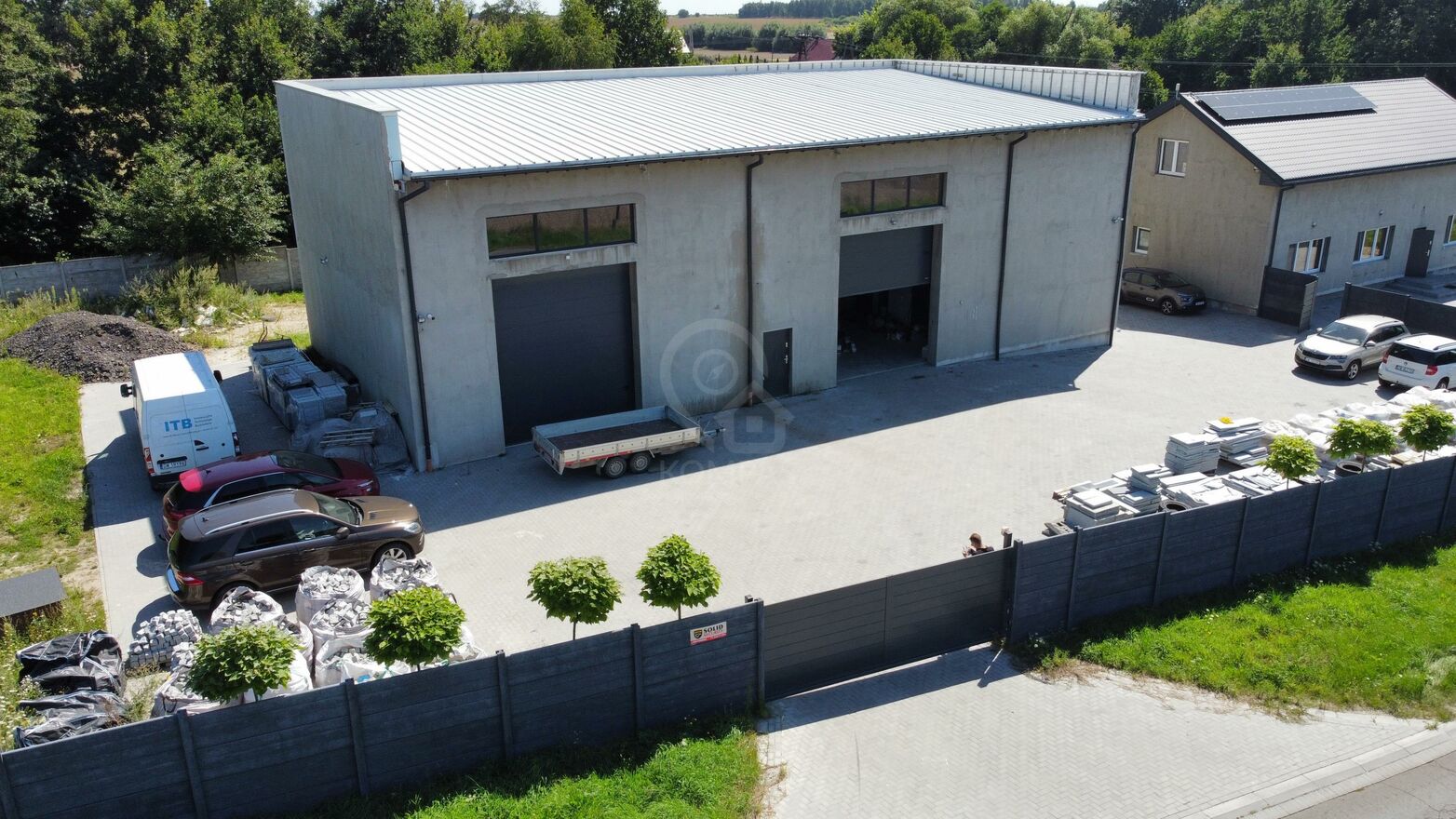 Hala magazynowa o łącznej powierzchni ponad 360 m2 rozłożonej na dwóch kondygnacjach (260 m2 parteru plus 100 m2 na piętrze). Hala podzielona jest na 2 oddzielne powierzchnie z dwoma niezależnymi bramami wjazdowymi. Do każdej powierzchni przynależą pomieszczenia gospodarcze na parterze czy piętrze. Wysokość Hali w najwyższym punkcie to 8m. Budynek oddany do użytkowania również w 2025 roku.