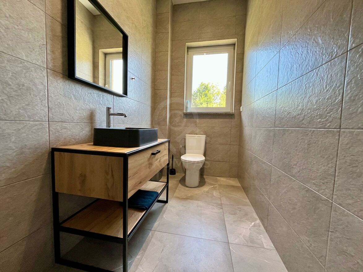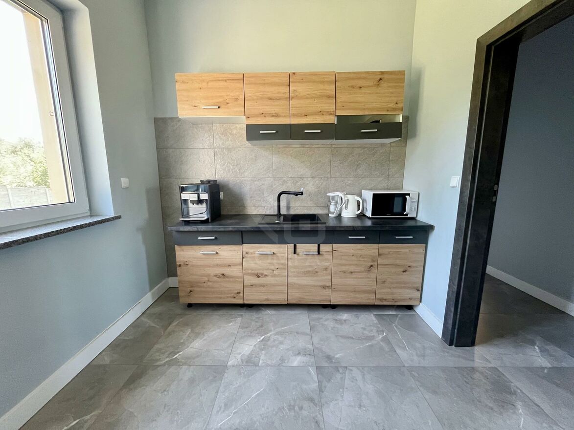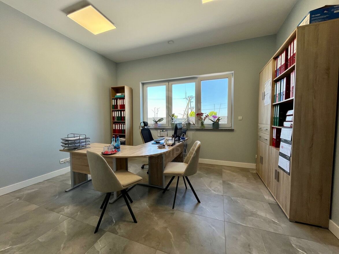 Dom jednorodzinny, który obecnie pełni funkcje biura o łącznej powierzchni ponad 200 m2 rozłożonej na dwóch kondygnacjach. Budynek oddany do użytkowania w 2025 roku. Dół domu jest całkowicie wykończony. Góra jest obecnie w stanie deweloperskim. Budynek wyposażony jest w fotowoltaikę oraz pompę ciepła. Posiada rolety antywłamaniowe sterowane zdalnie. Wysokość pomieszczeń na parterze to 3m. Na piętrze 2,6 m.